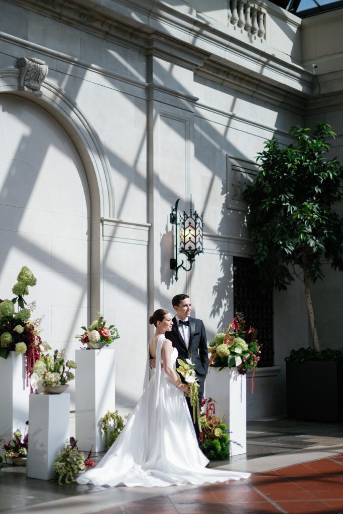 Florals are evolving alongside these intentional palettes. Couples are favoring bold, sculptural arrangements and unexpected color pairings that feel modern and expressive. As Natasha explains, we will see “statement florals in unexpected color pairings and lots of bold, artful arrangements.” Megan adds that couples are drawn to “layered textures, thoughtful art pieces, and color used with purpose, which allows floral design to become the anchor of the celebration’s visual story.