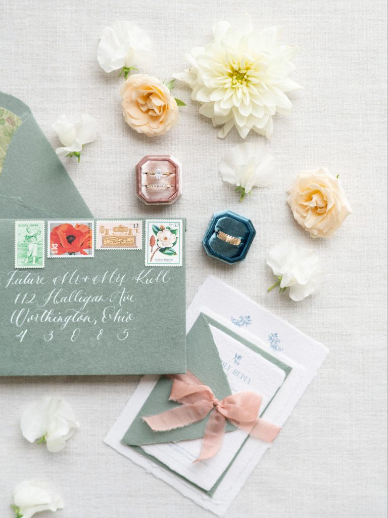 Personal touches made the wedding uniquely theirs. Sierra Dyer Co. designed the stationery, setting the tone with pieces that were both modern and timeless. Klare and Hayden also surprised their wedding party with custom Air Force sneakers designed by OPC Kicks, a fun and meaningful gift that added personality to the day. Guests enjoyed a beautifully crafted meal by Cameron Mitchell Premier Events, followed by a stunning cake from Cupcakes N Cream Bake Shoppe. Copper Mug Co. supplied custom mule mugs that elevated the cocktail experience, while rentals from Aiden and Grace, Artisan Tableware Co., and Got Ya Covered Linens styled the reception with elegance.
