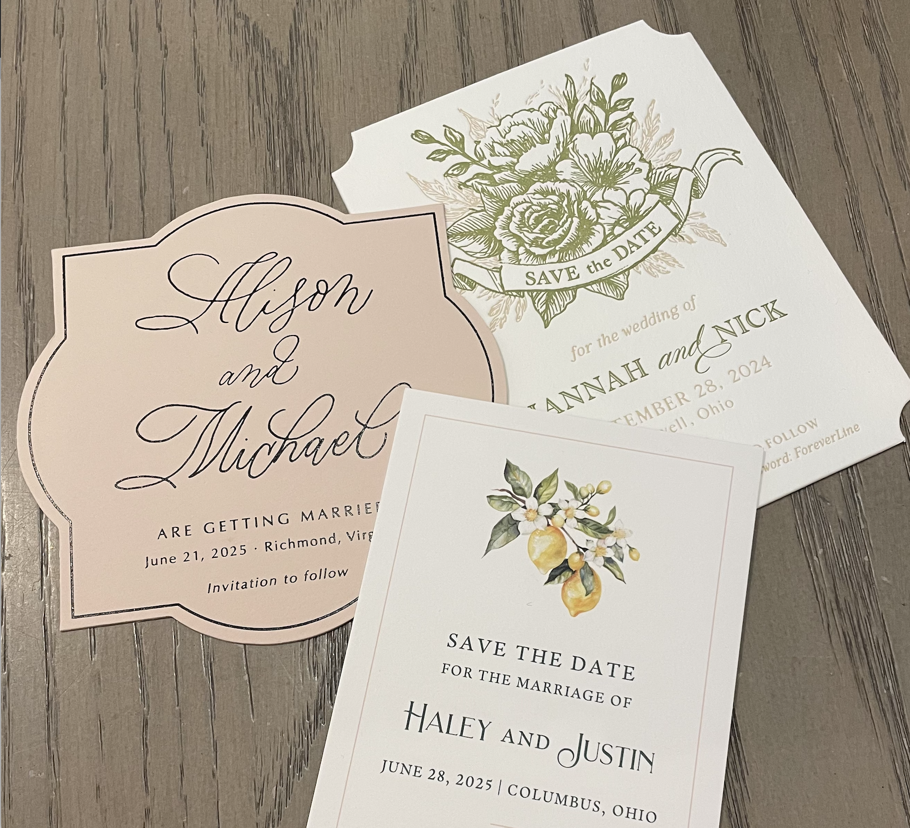 Save the dates are typically the first piece of wedding stationery guests receive, and they play an important role in the overall timeline. These cards usually include the couple’s names, wedding date, and location, along with the phrase “formal invitation to follow.” Many couples also choose to include their wedding website so guests can begin gathering details about travel.