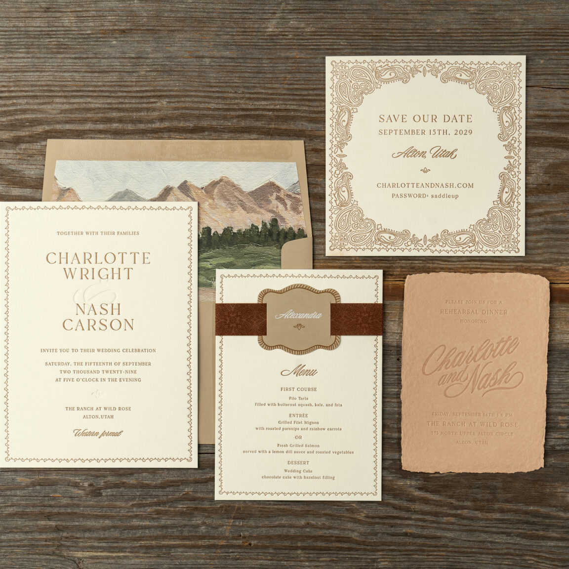 When couples meet with On Paper Press for a consultation, the conversation doesn’t start with a single card, it starts with the full vision. Rather than designing save the dates as a standalone piece, the invitation suite is considered first. From there, the Save the Date is built as a cohesive extension of that design, ensuring that every element feels aligned and thoughtfully connected.
