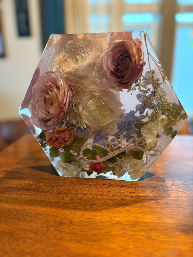 Raedient Design turns your wedding day flowers into timeless keepsakes. Using top tier methods like silica drying, pressed flowers and resin preservation, they capture vibrant colors, delicate petals and emotional weight of your special day.